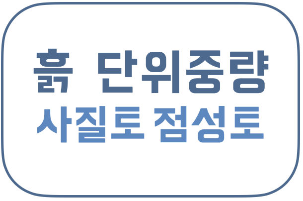 흙 단위중량은 기초 설계에 사용되는 지반 정수로써 현장에서 채취한 시료로부터 단위중량을 구하는 것이 가장 정확합니다. 단, 실험을 하지 않았거나 시험 결과가 나오는데 기간이 필요하다면 위의 단위중량을 사용할 수 있습니다.